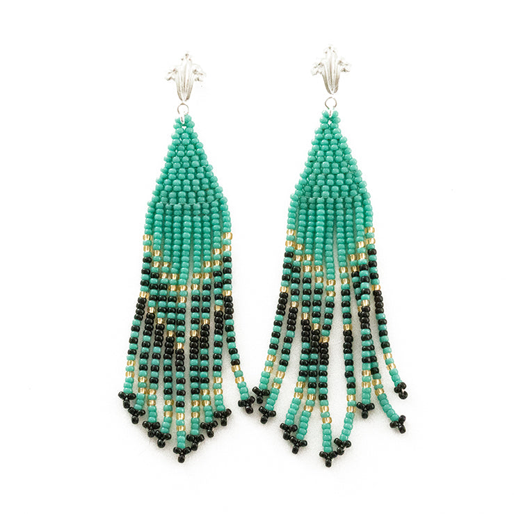 Estos aretes azules y tornasolados emulan las alas de la mariposa morpho. Ligereza, transformación y belleza se funden en una joya que honra lo efímero y lo sagrado de la metamorfosis. Tejidos con maestría por mujeres Embera Katío, guardianas del conocimiento espiritual y del arte de narrar con cuentas, capturan en esta pieza la esencia de lo que vuela libre y transforma el entorno. Bajo el diseño de Isabella Endémica y ensamblados en plata reciclada en el taller de Tatiana Apraez, estos aretes son símbolo de renovación y libertad ancestral.