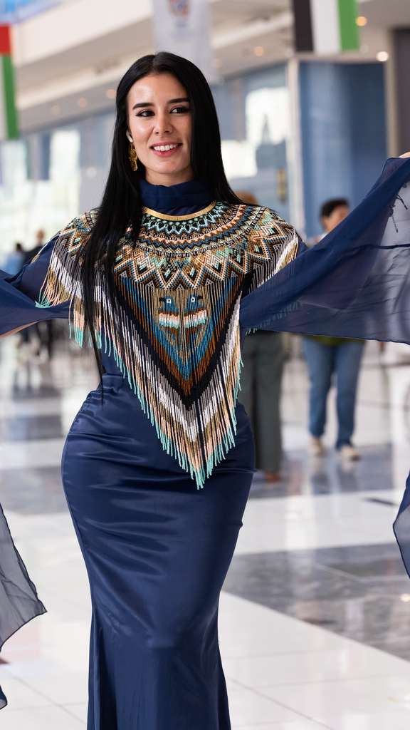 Sus tonos café, beige, blanco y azul evocan la textura del barro, la espuma del río y la calma del amanecer en la Sierra.
